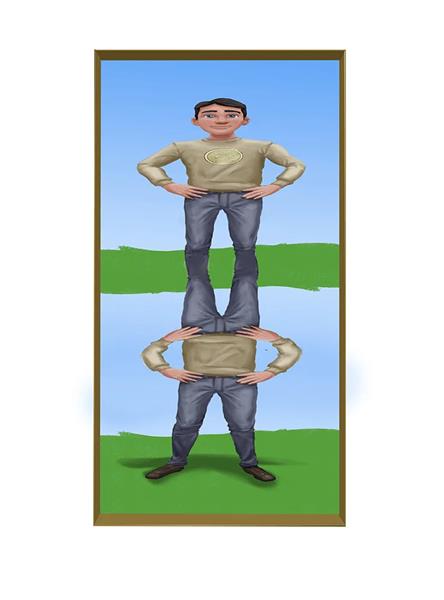 Een dubbelzijdige lachspiegel in vervorming Bol Hol Bol in de kleur zwart.